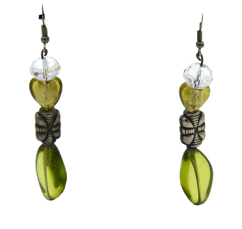 COPPIA DI ORECCHINI PENDENTI CON PIETRE E ELEMENTI ARGENTATI
