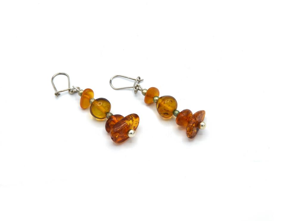 COPPIA DI ORECCHINI PENDENTI CON ELEMENTI IN AMBRA lunghezza cm 6