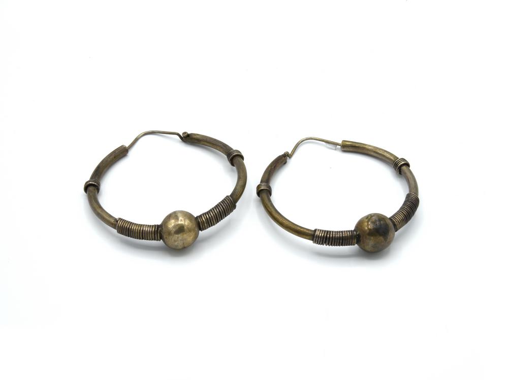 ORECCHINI A CERCHIO IN ARGENTONE CON SFERA CENTRALE E FILI ATTORCILIATI
