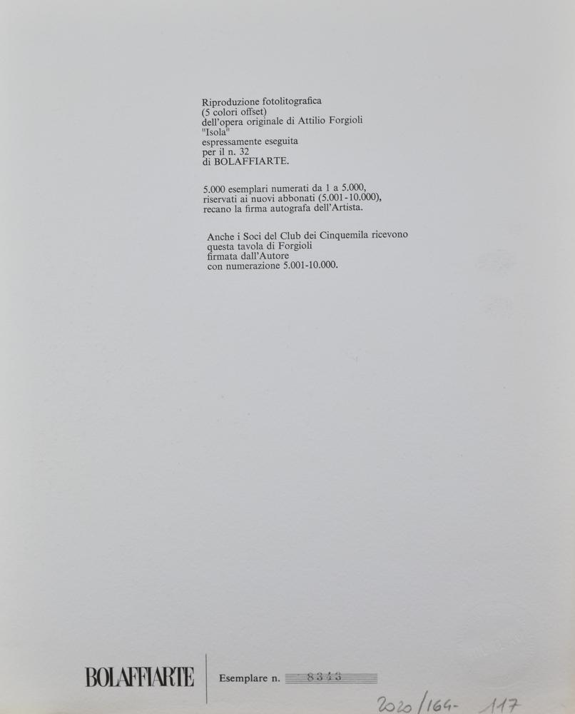 Attilio Forgioli ISOLA fotolitografia a 5 colori su cartoncino, cm 30x23,5;...