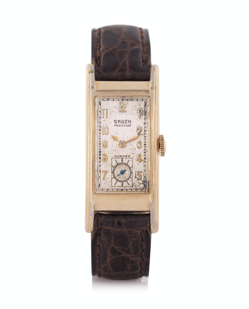 GRUEN GRUEN CURVEX ANNI '40. Cassa rettangolare, arcuata laminata in oro...