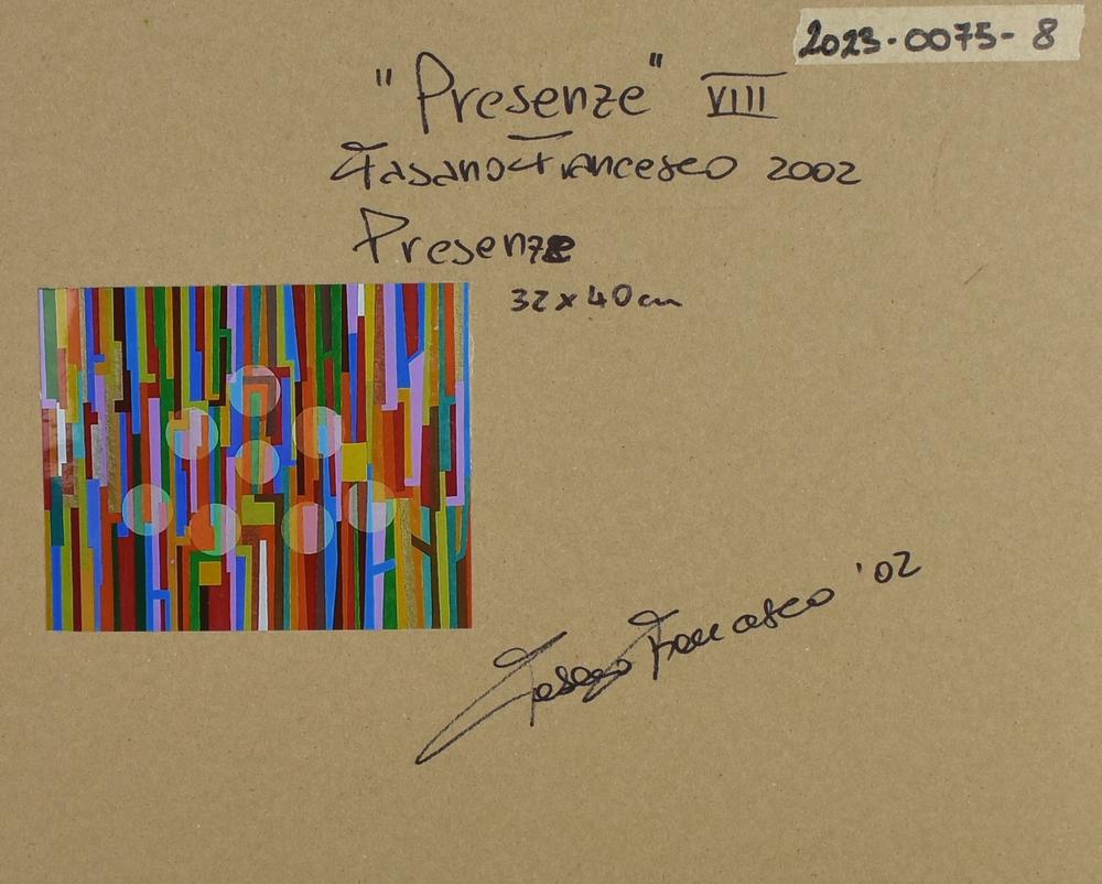 Lotto 26 | Francesco Fasano PRESENZE VIII acrilico su cartoncino, cm 32x40 sul retro:...