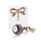Cassa e sfera in argento con smalti nei toni del viola e dell'oro. Quadrante in smalto con numeri arabi, indici applicati. Movimento carica manuale tramite la rotazione della lunetta. Trattenuto da spillette a fiocco, una in metallo dorato ed una in oro 9 kt.