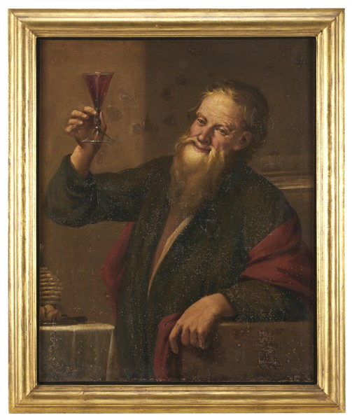 Antonio Cifrondi "Bevitore" olio su tela (cm 87,5x71) in cornice (difetti e rest