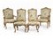 Fornitura da salotto composta da due sedie e due poltrone in legno intagliato e dorato di forma mossa con decoro a volute fogliate e cartouches. Seduta e schienale rivestiti in tessuto policromo con decoro floreale. Piemonte, secolo XVIII (difetti e restauri)