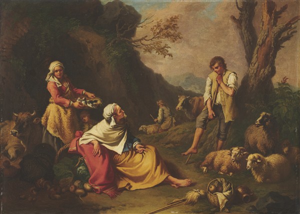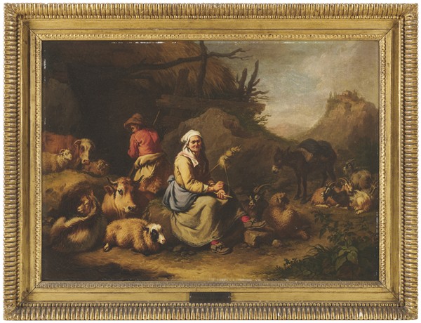 Francesco Londonio "Vecchia contadina che fila" e "Riposo dei pastori" coppia di