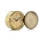 TIFFANY & CO. SVEGLIETTA ANNI '60. Cassa circolare in ottone dorato. Quadrante champagne indici smaltati, lancetta per la sveglia al centro . Movimento a carica manuale (8 giorni).