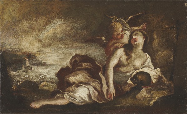 Scuola toscana del secolo XVIII "La Maddalena e un angioletto in un paesaggio"