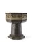 Hexagonal marble cup with column support and band decorated with perforated and gilded sheet metal appliqué depicting a landscape with deities and oriental figures. Early 20th century (h. cm 16, d. cm 14) (defects)