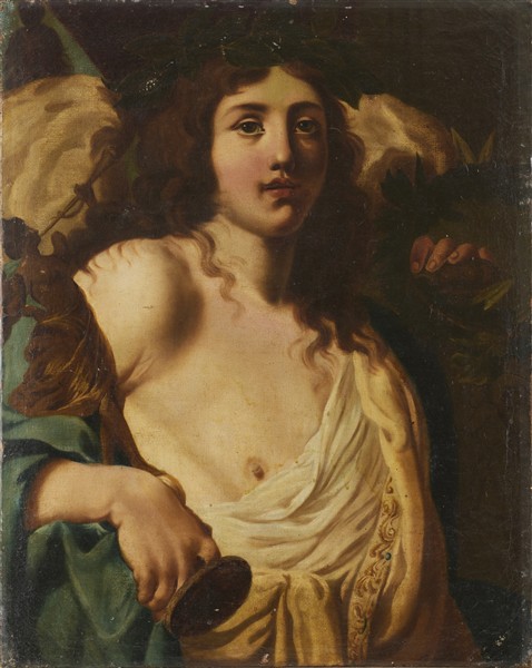 Seguace di Alessandro Rosi del secolo XVIII "Genio della Gloria" olio su tela