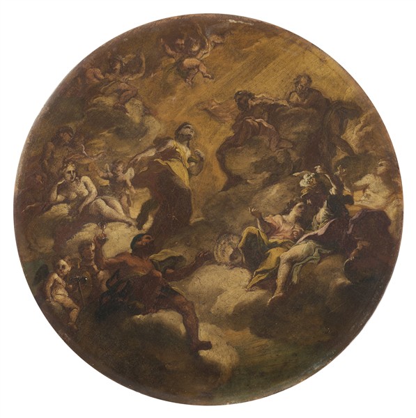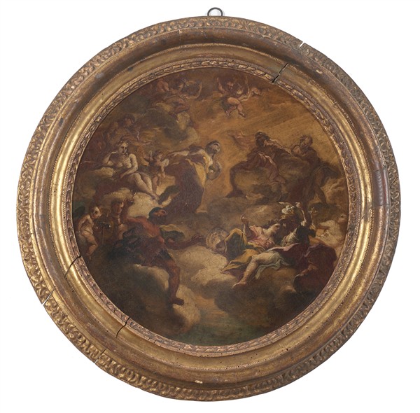 Maestro dell'inizio del secolo XVIII "Apoteosi di santi" due dipinti, probabil