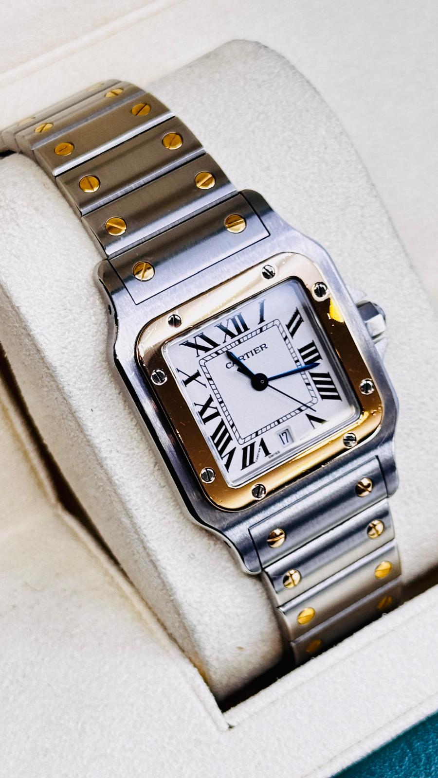 Marca Cartier Modello (Orologio) Santos Galbée Numero di referenza 1566 Carica Quarzo Materiale della cassa Oro/Acciaio Materiale cinturino Oro/acciaio scatola originale, no documenti Cartier, garanzia del negozio di un anno Cassa Materiale della cassa Oro/Acciaio Diametro 29 x 41 mm Vetro Vetro zaffiro Cinturino Materiale cinturino Oro/acciaio Colore cinturino Argento - COMMISSIONE D’ASTA 25%