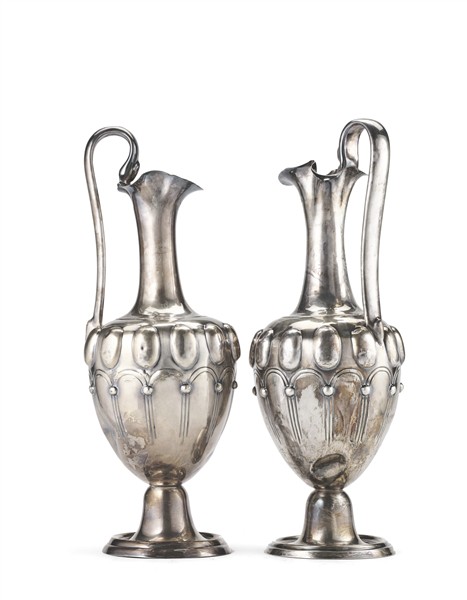 Coppia di versatoi in argento decorati a baccellature ed elementi stilizzati po