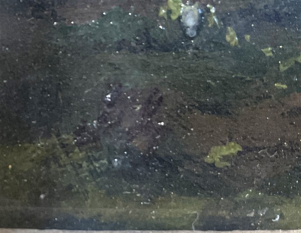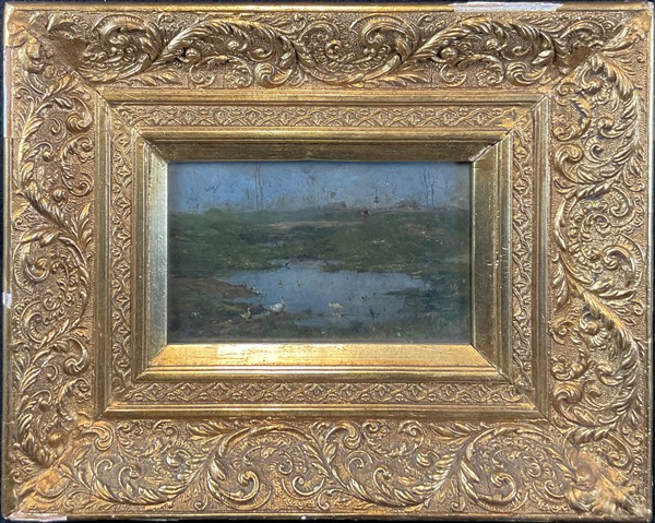 Ignoto del secolo XIX "Scorcio di stagno con anatre" olio su tavoletta (cm 12