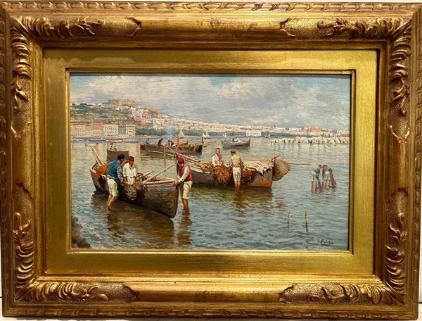 Lotto 41 | Attilio Pratella "Pescatori a Posillipo" olio su compensato (cm 22,5x35) Firmat