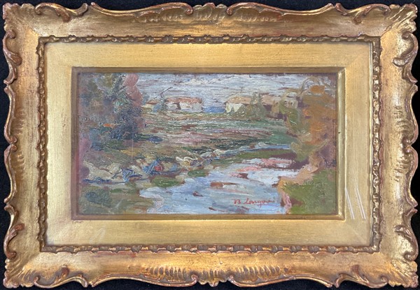Lotto 59 | Baldassarre Longoni "Scorcio di paesaggio" olio su cartone (cm 11,5x20) Firmato