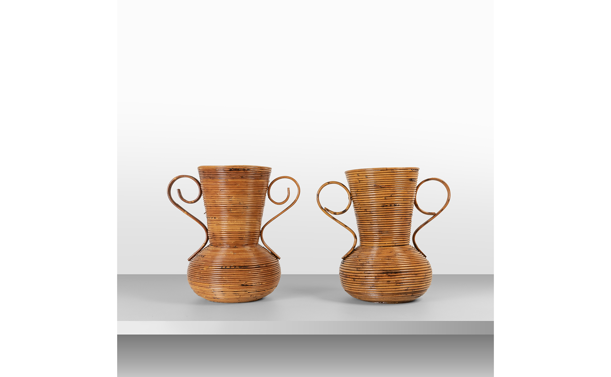 Precedente Lotto 3110 Successivo Aste Boetto - Via Mura dello Zerbino 10R, 16122 Genova DESIGN E ARTI DECORATIVE DEL NOVECENTO DESIGN E ARTI FIGURATIVE DEL NOVECENTO giovedì 30 ottobre 2025 ore 10:30 (UTC +01:00) PORTAOMBRELLI DUE PORTAOMBRELLI anni '60. Giunco.Cm 52 (h).