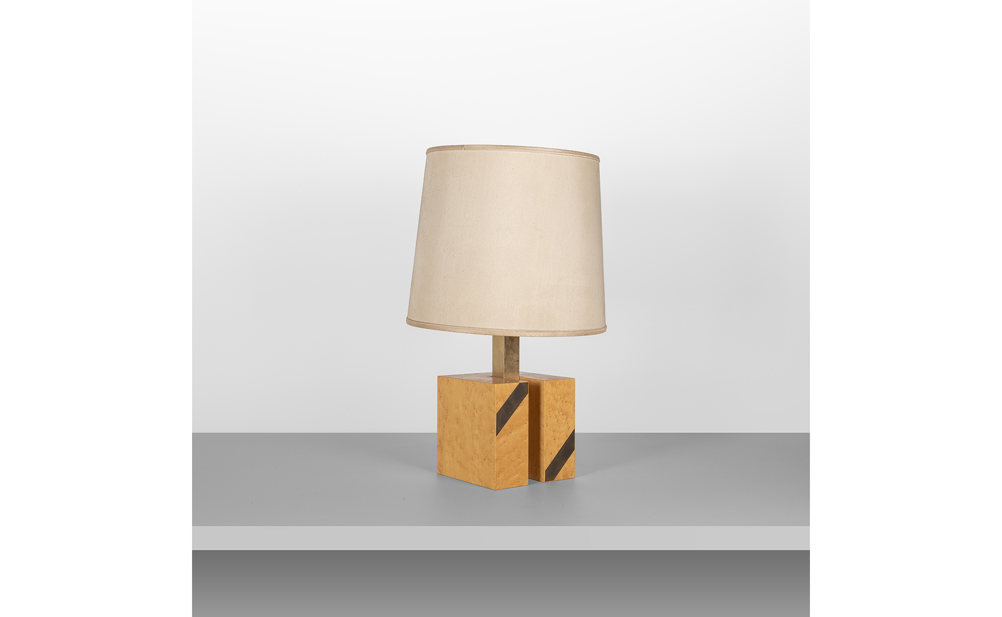 Base in radica di tuia con fasce diagonali in ottone brunito ottone