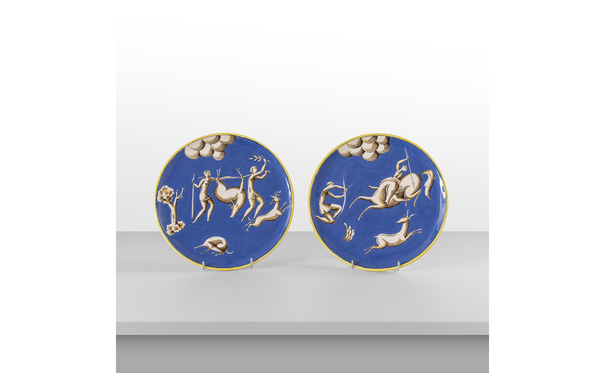 Ceramica smaltata con decoro venatoria.