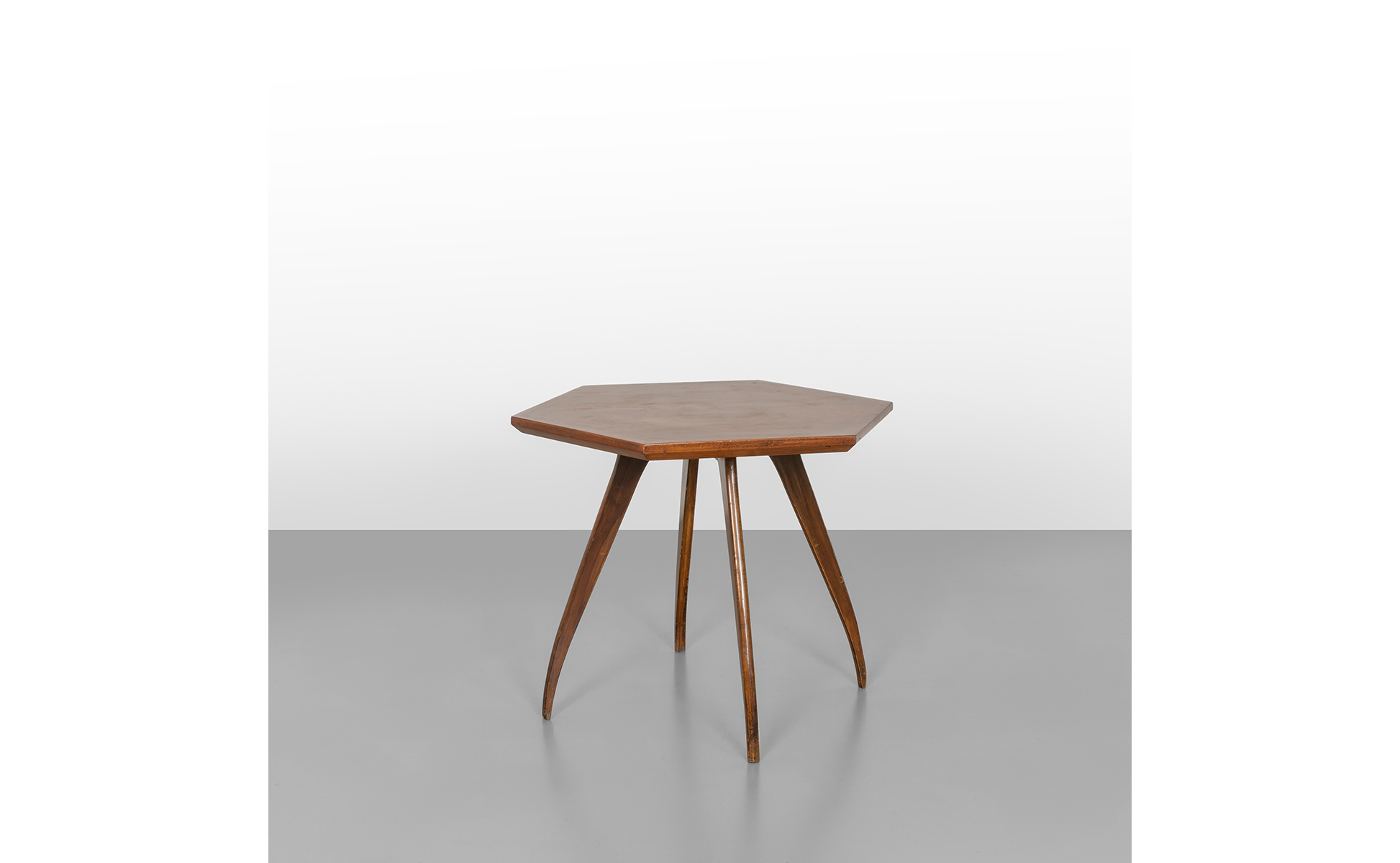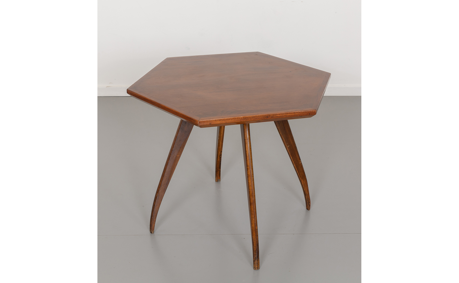 Gambe in legno di faggio tinto all'anilina piano in legno di noce.