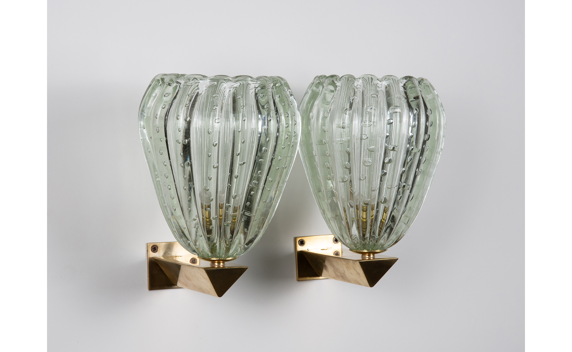 Vetro soffiato bulicante lavorato a coste ottone.