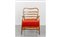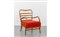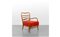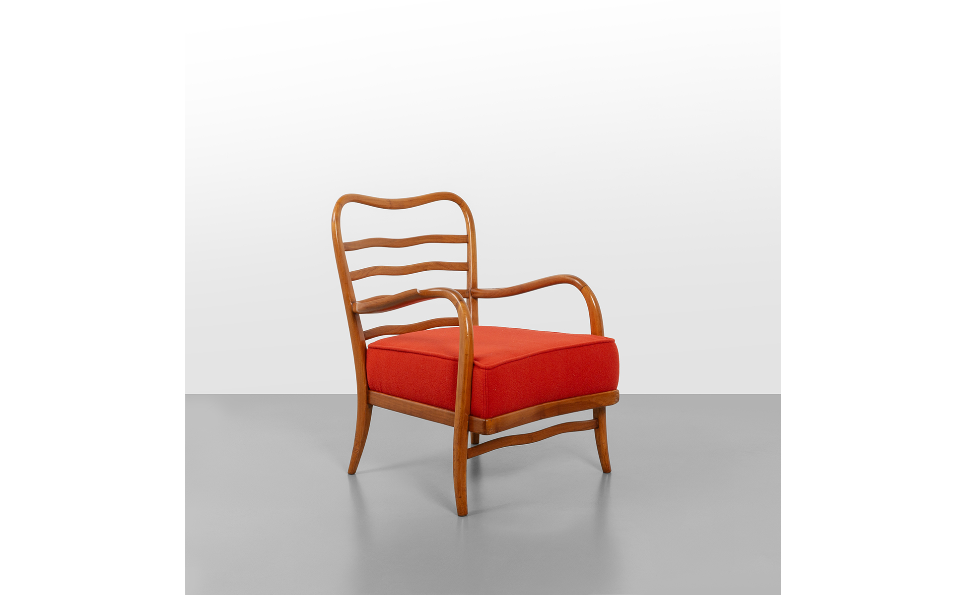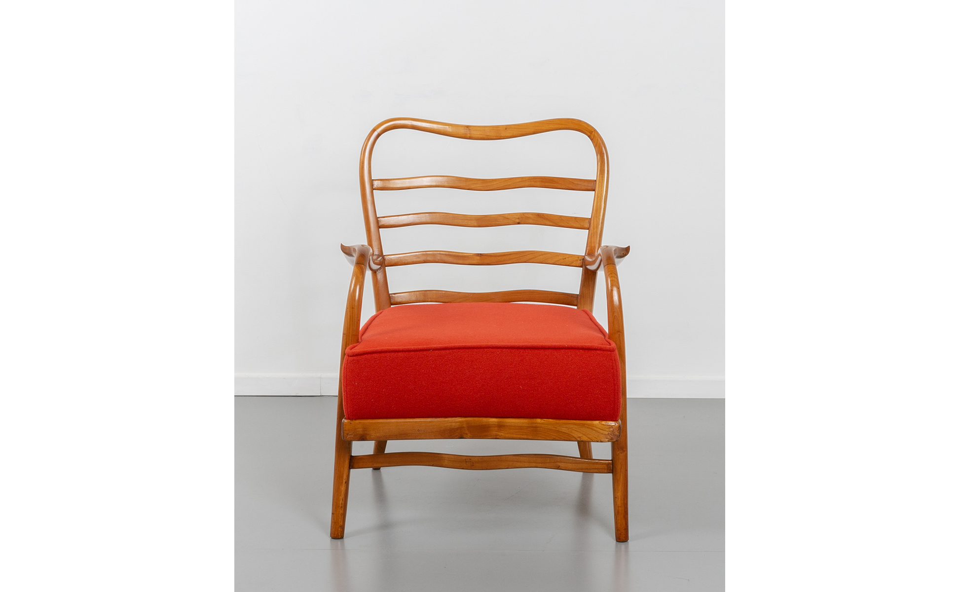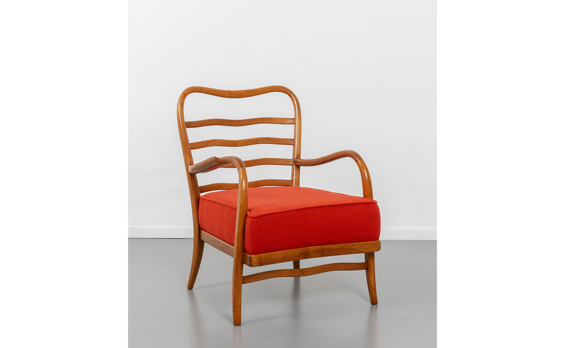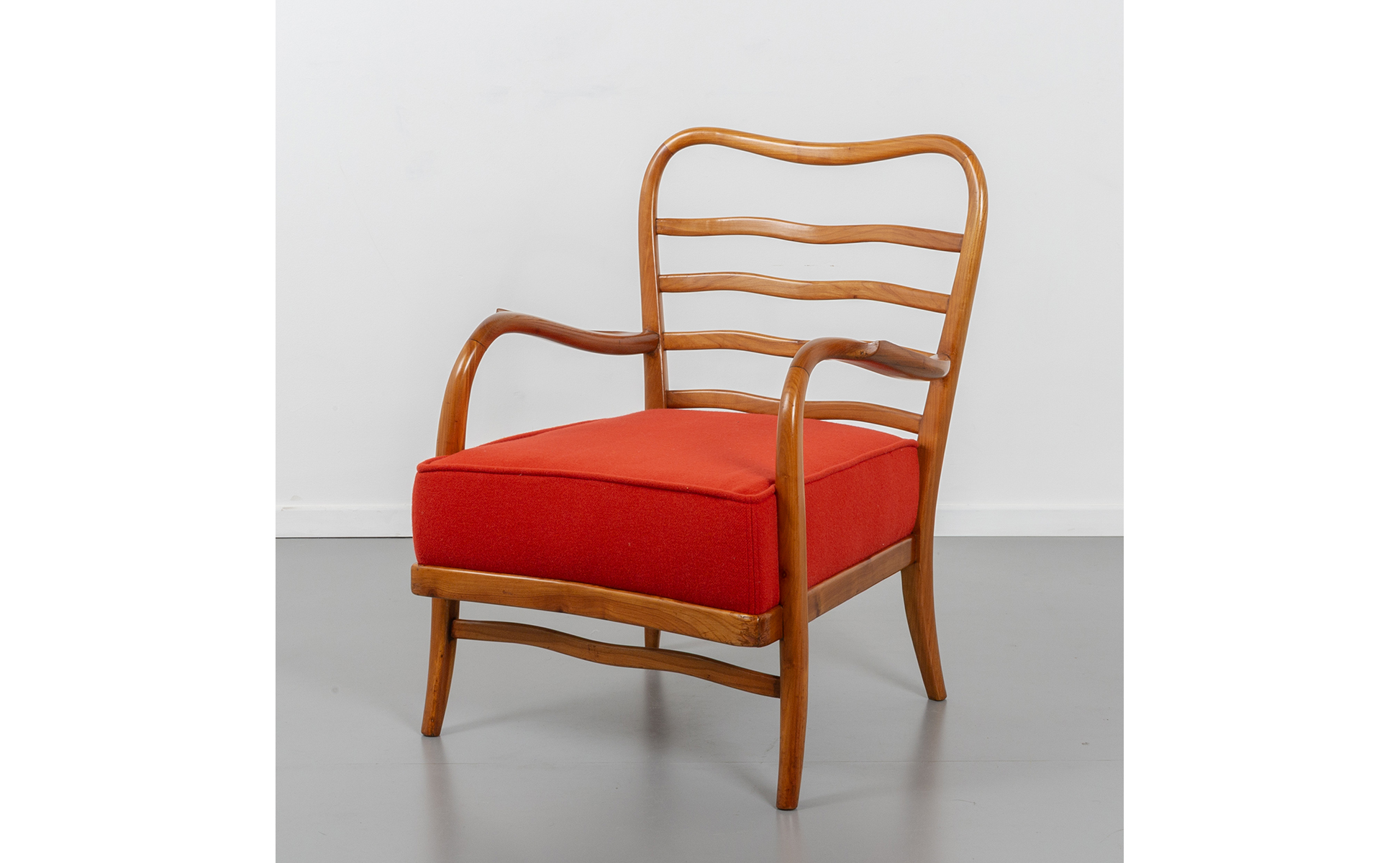 Legno di ciliegio seduta imbottita rivestita in tessuto.