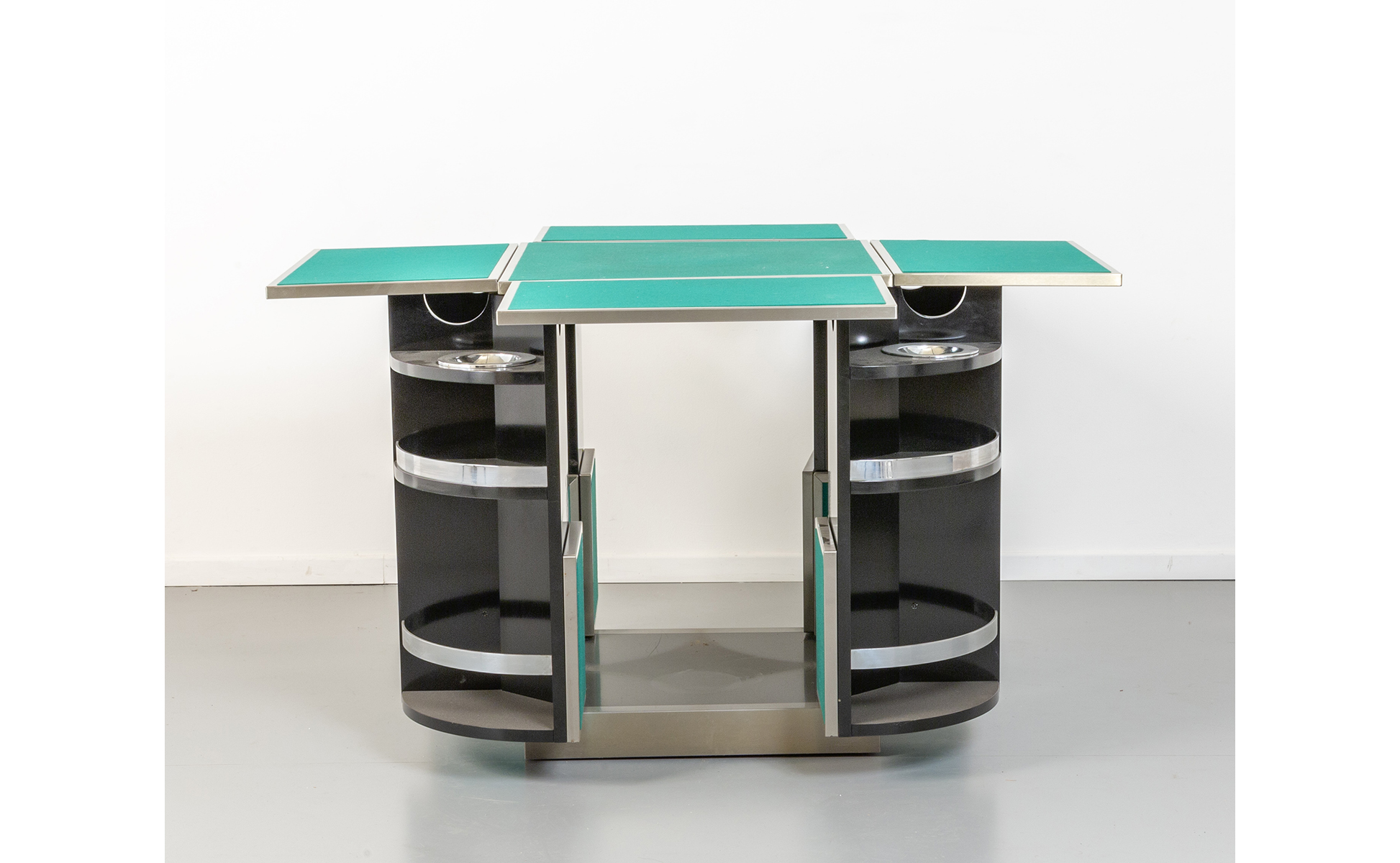Tavolo (acciaio cromato satinato legno laccato panno):