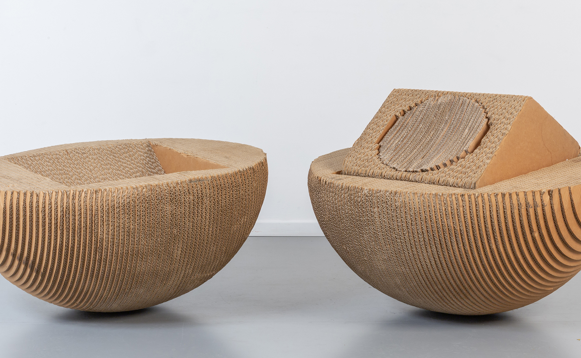 Due poltrone e un tavolino richiudibili a formare una sfera.