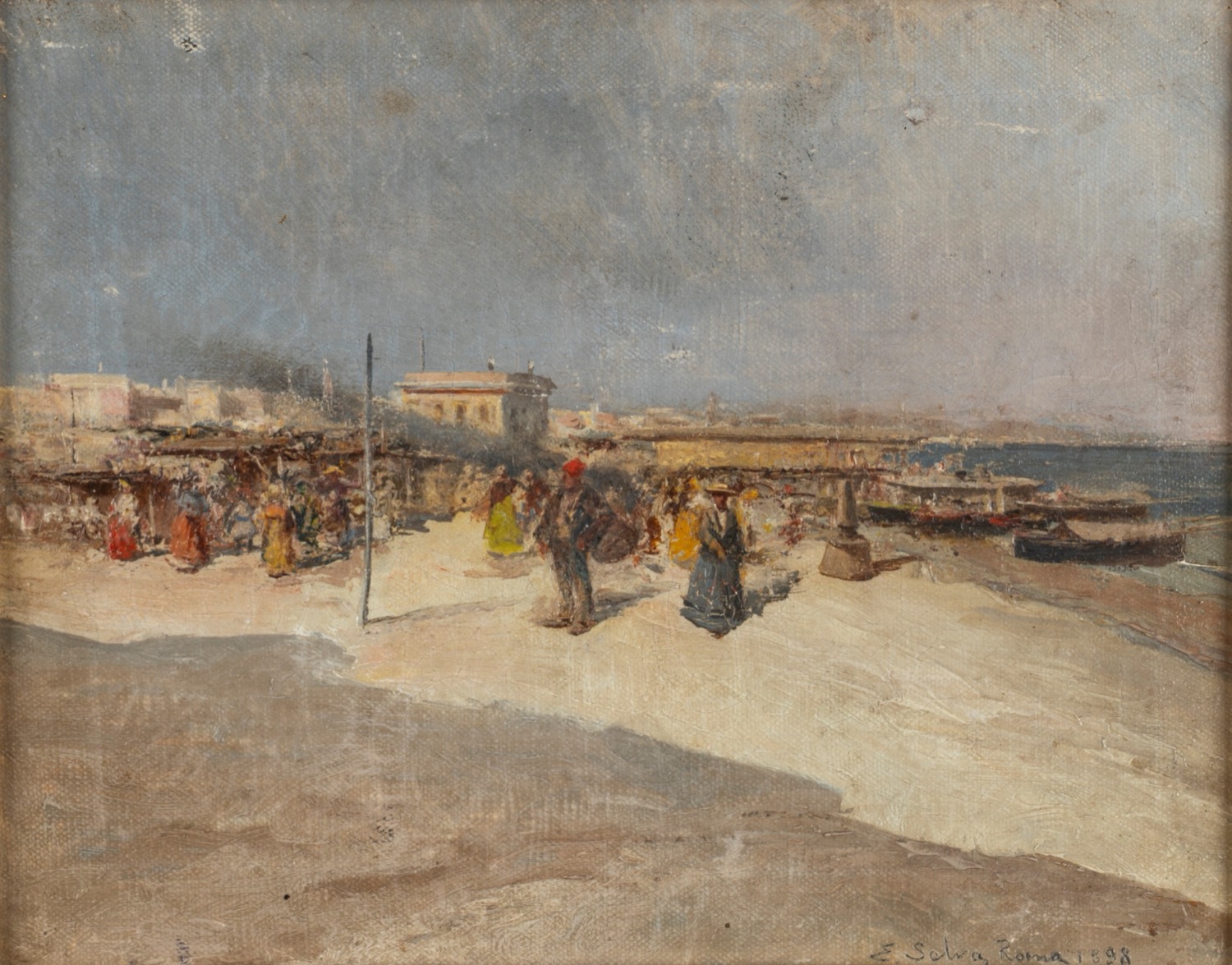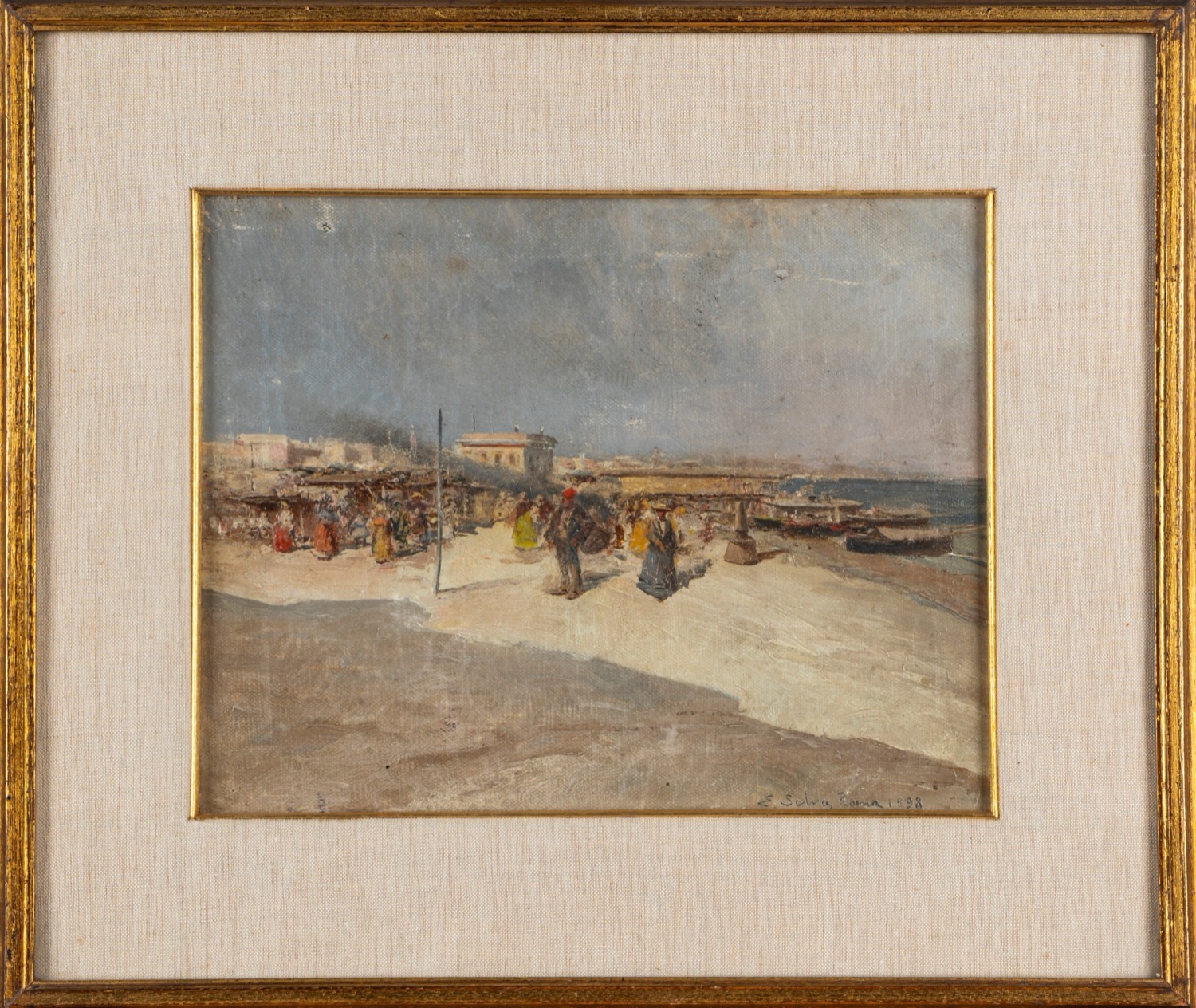 Eugenio Selva (attivo nella seconda metà del XIX - prima metà del XX secolo) - Il mercato al porto, 1898