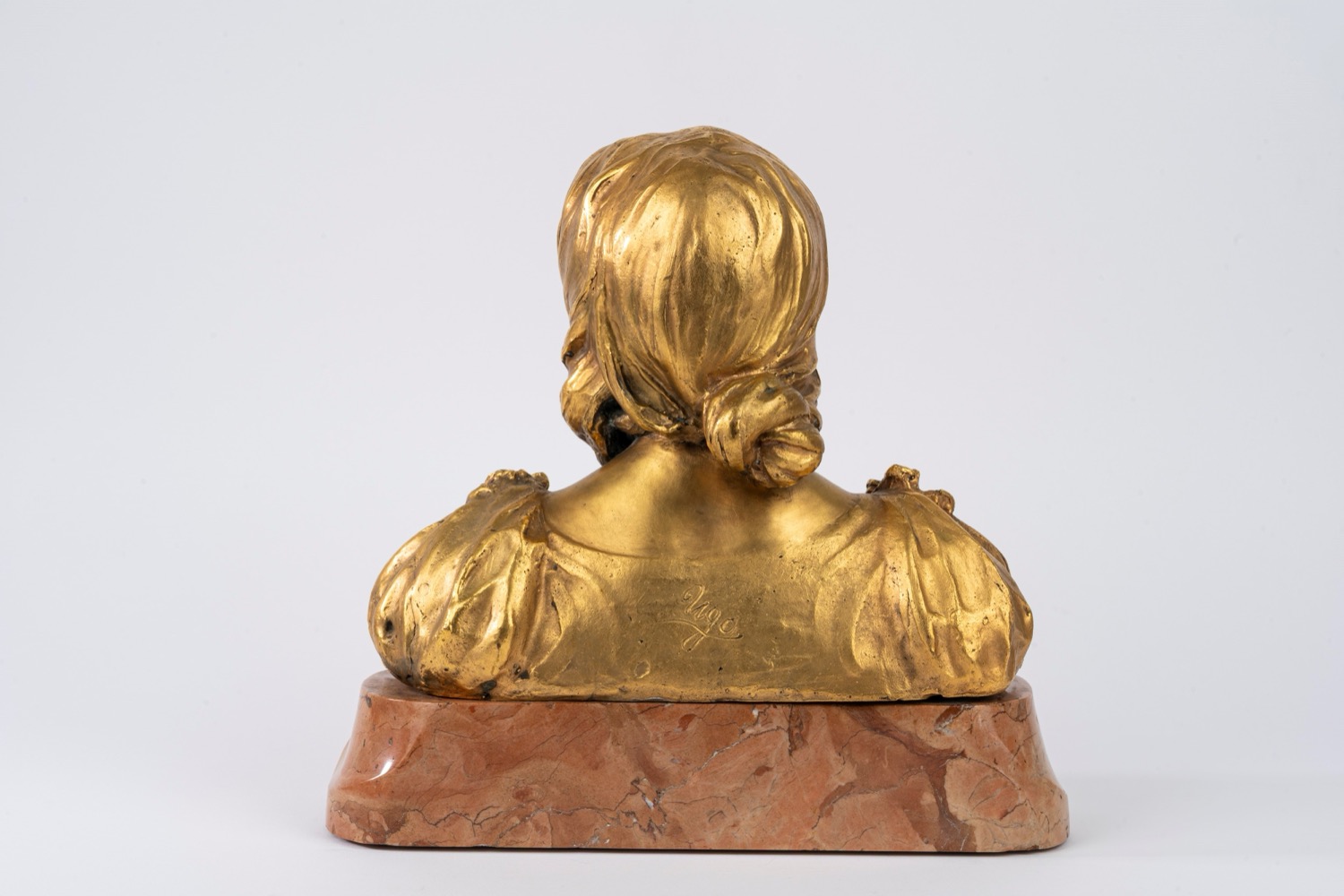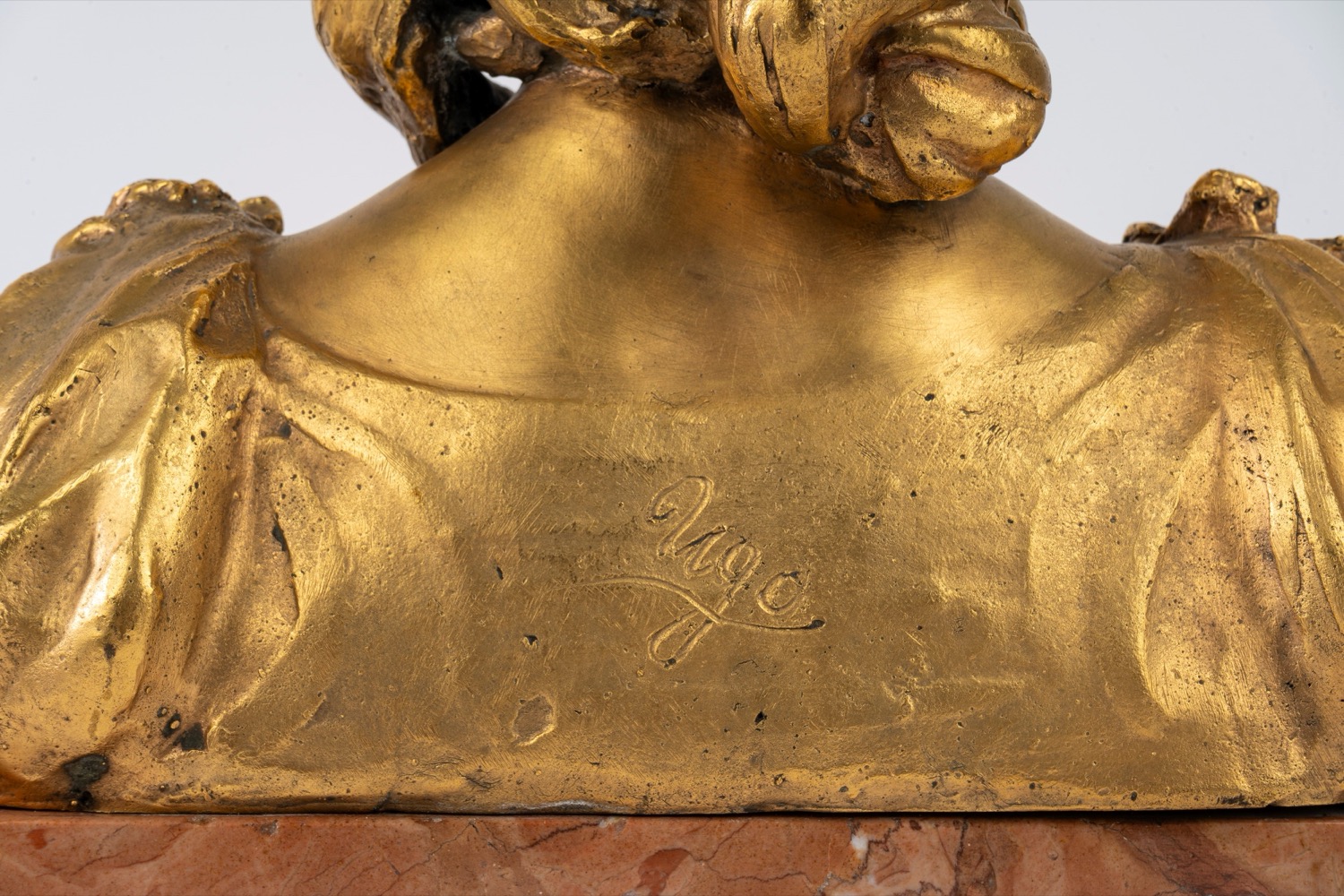 scultura in bronzo a patina dorata su base in marmo rosso di Verona