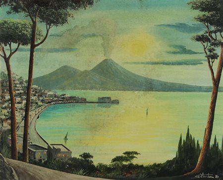 Gilart (Gilardi Alberto) Baia di Napoli, 1980 olio su tela, cm. 45,5x54,5...