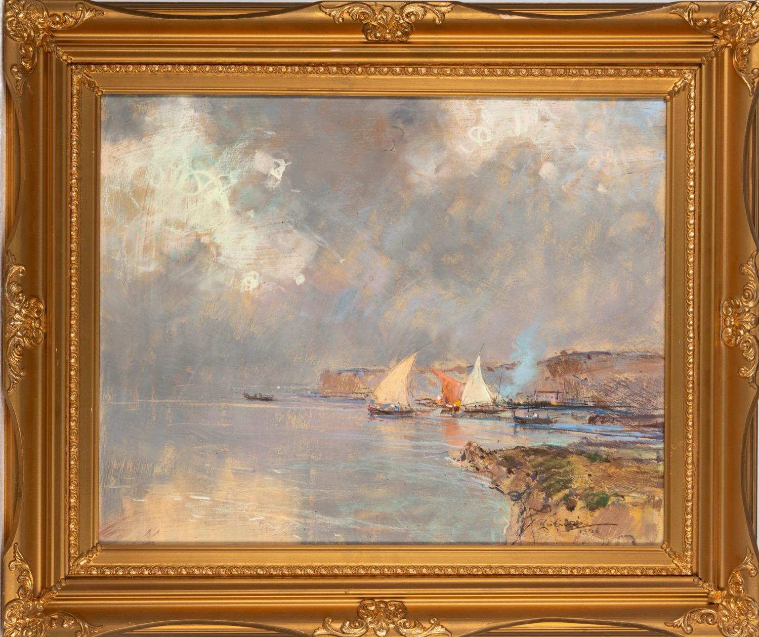 Giuseppe Casciaro (Ortelle 1863 - Napoli 1945) - Vele nel golfo, 1926