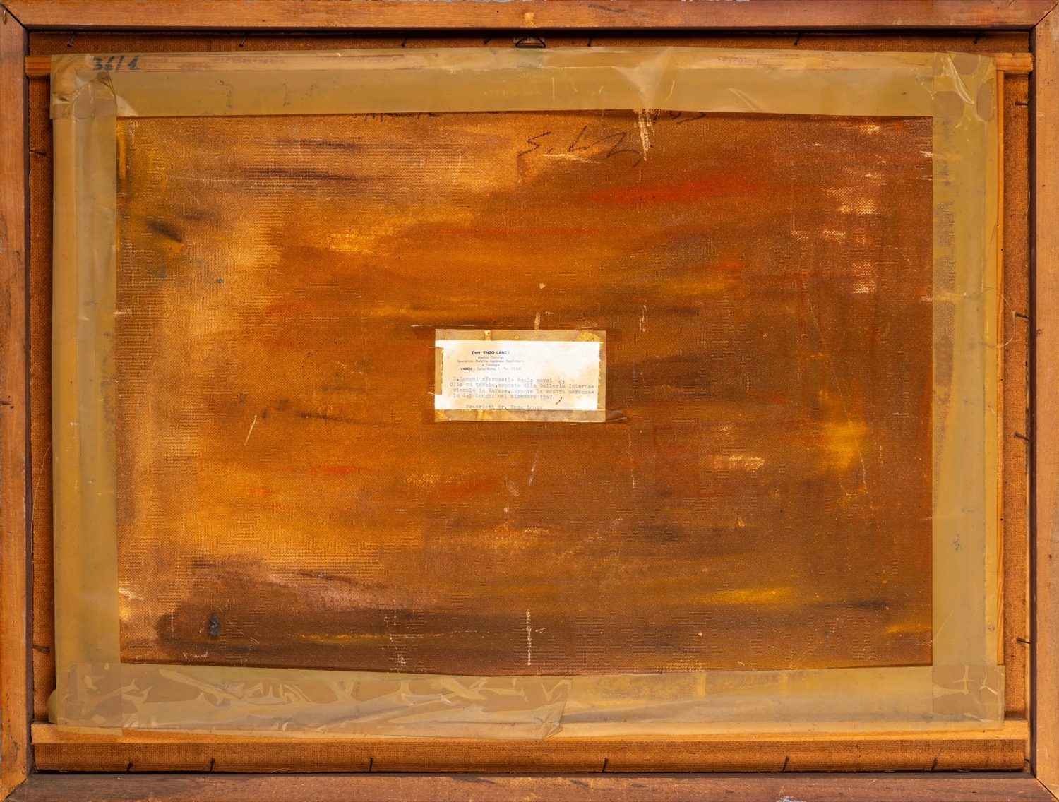 al retro, sulla masonite, firmato, titolato e datato 1963
