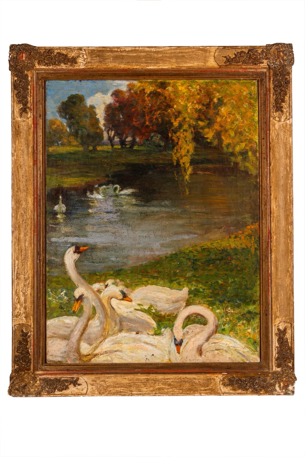 Luigi Rossi (Cassarate 1853 - Tesserete 1923) - Studio per il dipinto "La Guardiana dei Cigni"