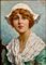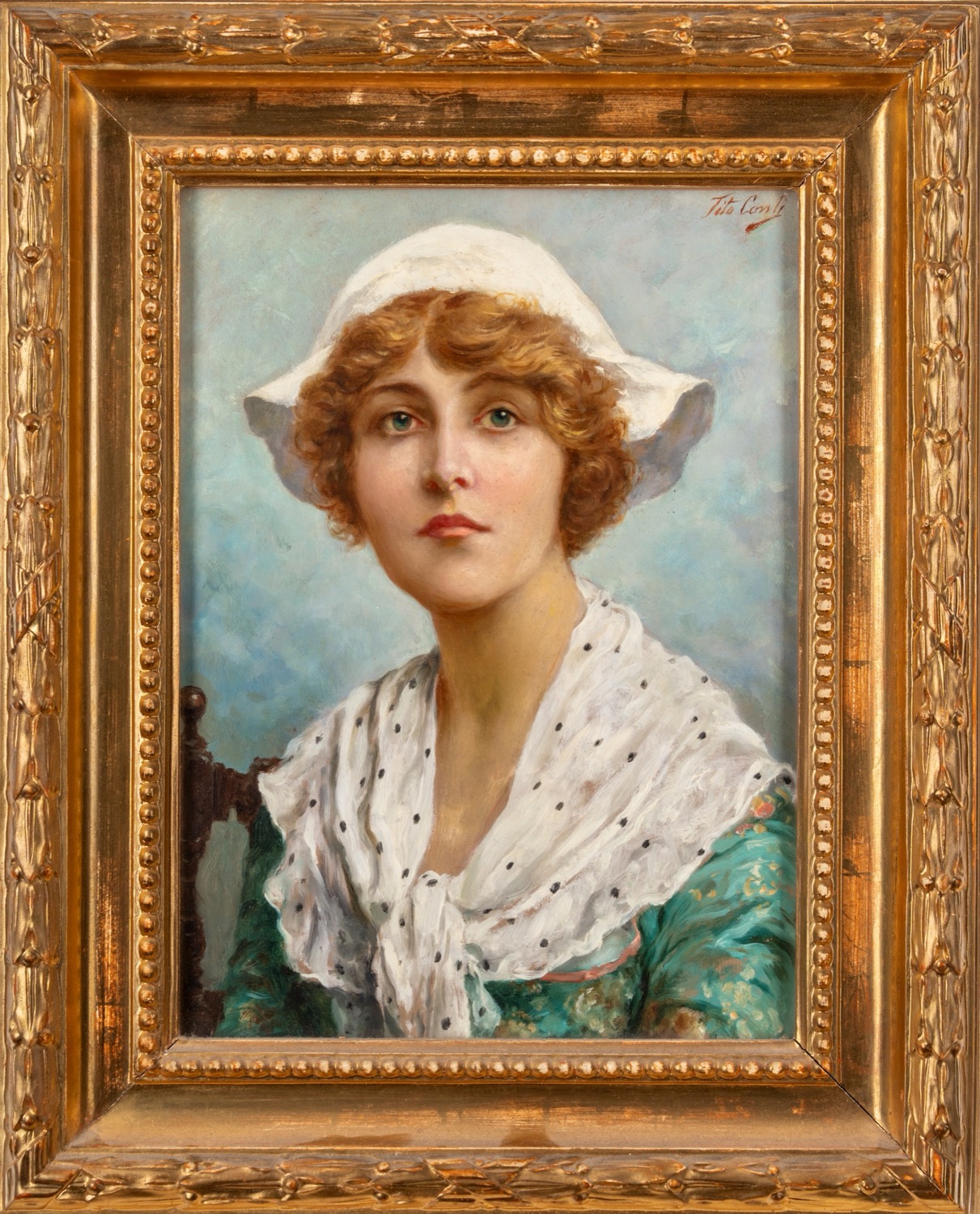 Tito Conti (Firenze 1842 - 1924) - Ritratto di giovane donna con cappello bianco e foulard