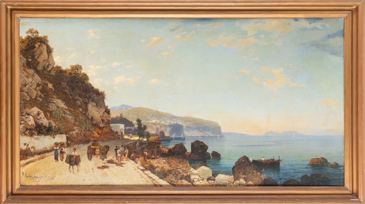Hermann David Salomon Corrodi (Frascati 1844 - Roma 1905) - Veduta della Costiera sorrentina con Capri, 1870