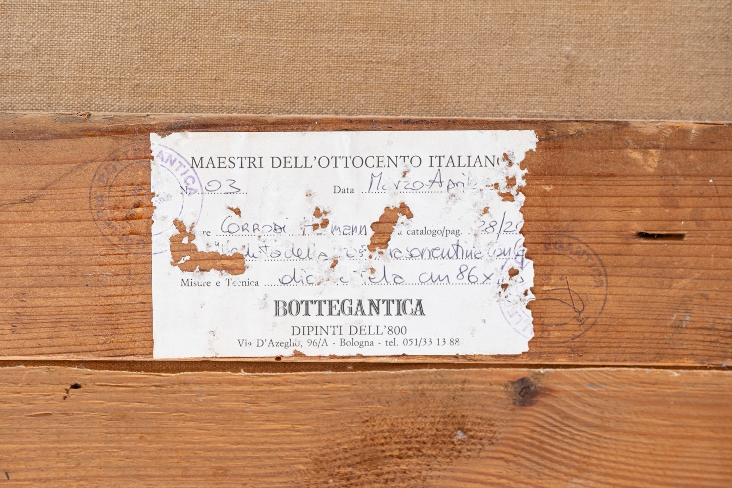 al retro, sul telaio, etichetta e timbro della galleria Bottegantica con riferimenti al dipinto