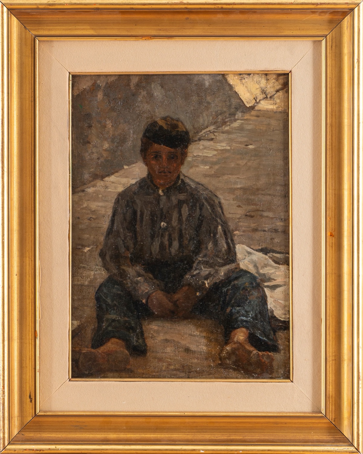 Telemaco Signorini (Firenze 1835 - 1901) - Riomaggiore, ragazzo seduto con berrettino