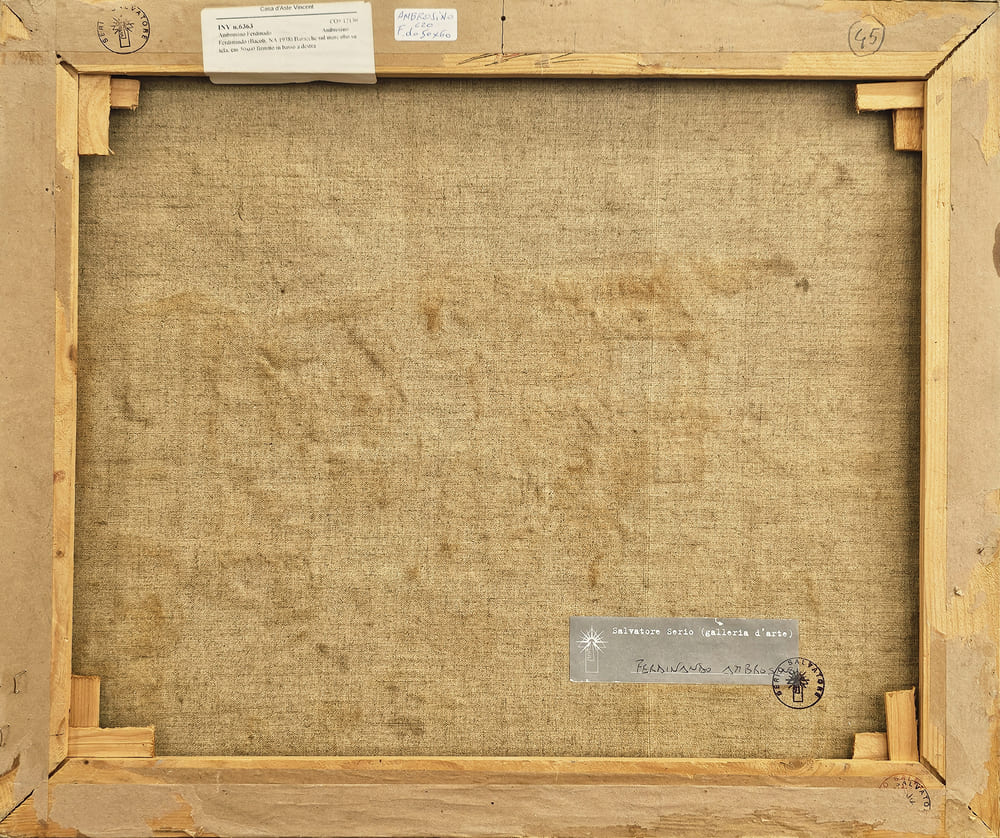 osservazioni: opera priva di cornice, a tergo recante cartiglio e timbri Galleria Serio