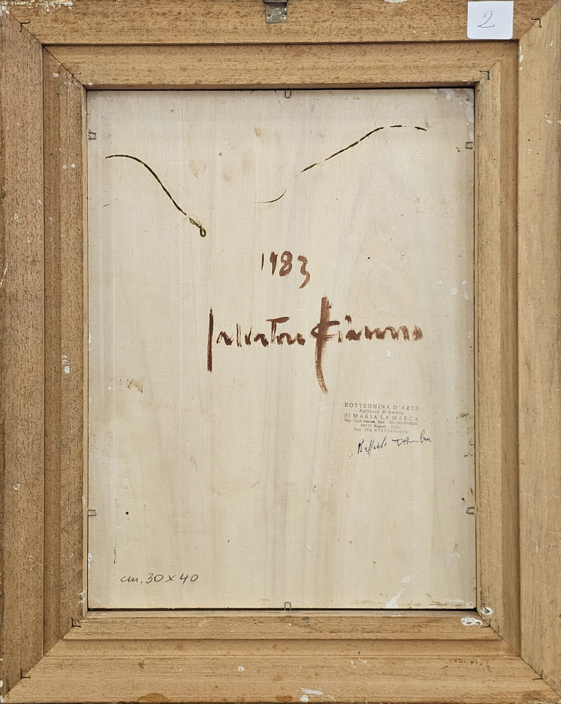 osservazioni: opera a tergo firmata, iscritta e recante timbro Botteghina d'Arte D'Ambra