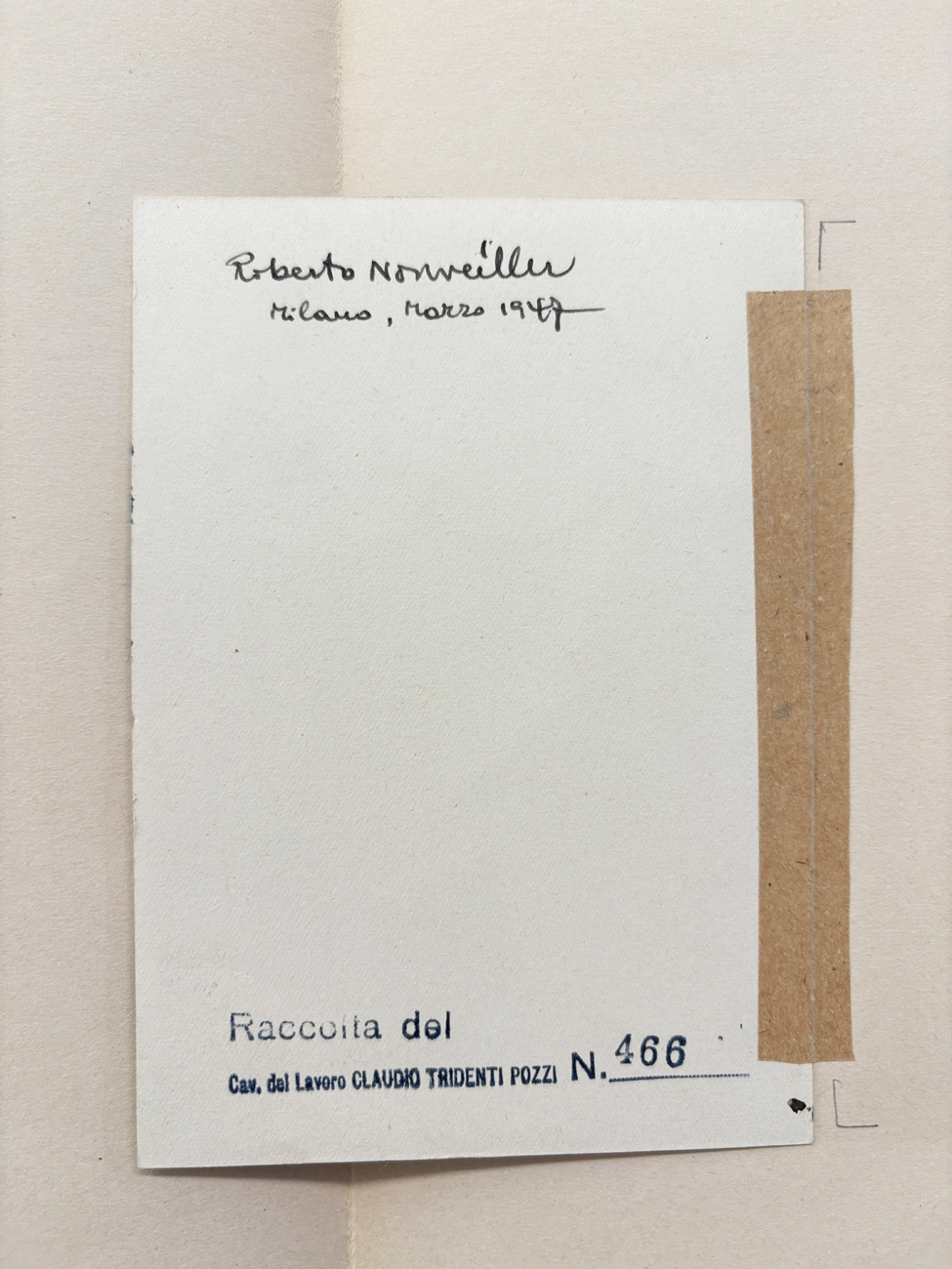 Timbro della Raccolta Claudio Tridenti Pozzi con numero di repertorio al retro