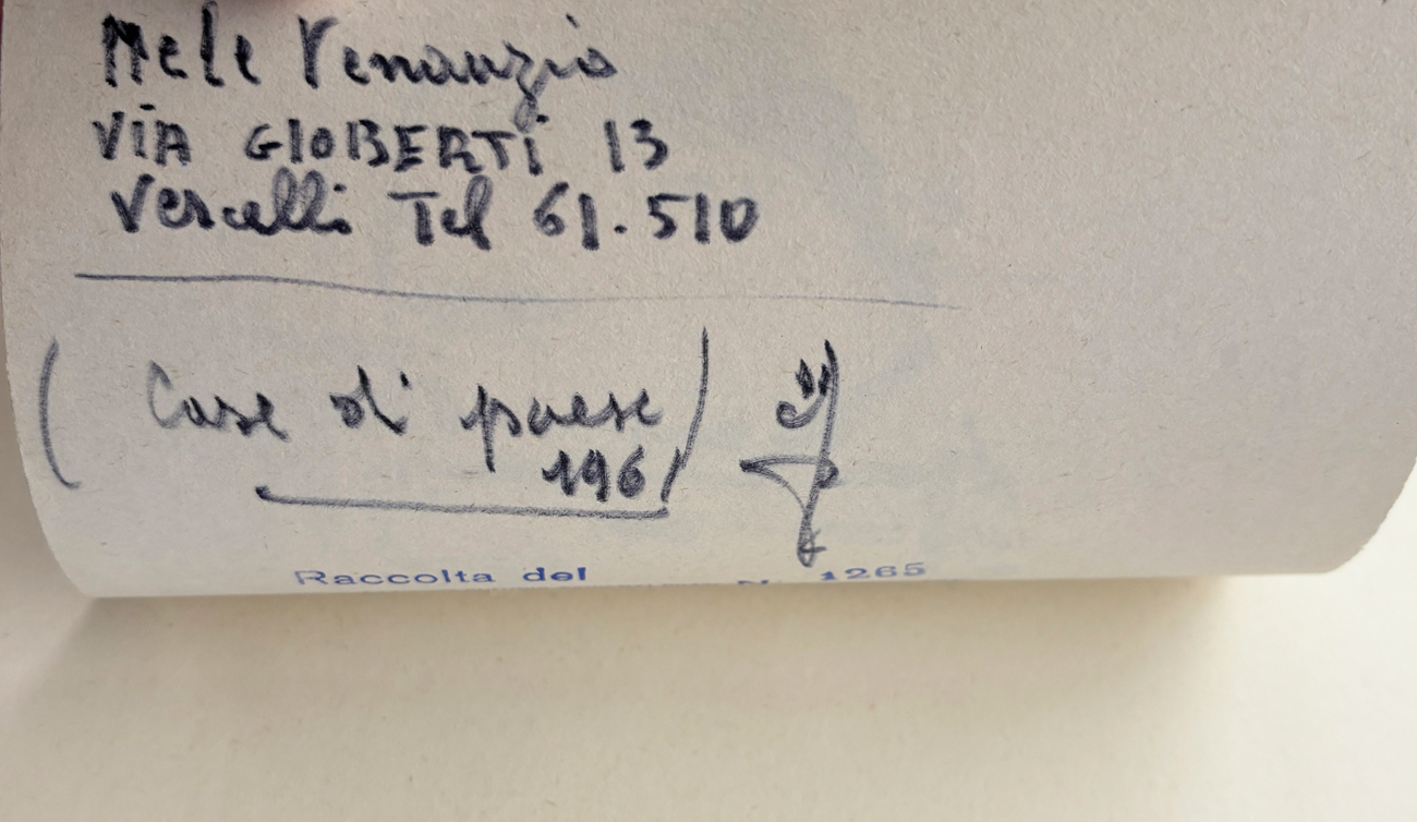 Timbro della Raccolta Claudio Tridenti Pozzi con numero di repertorio al retro