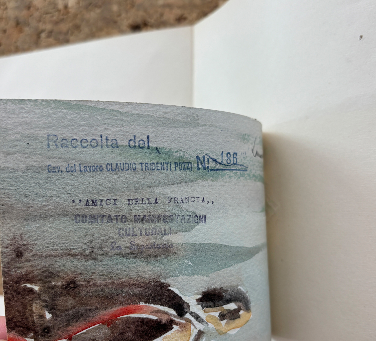Timbro della Raccolta Claudio Tridenti Pozzi con numero di repertorio al retro