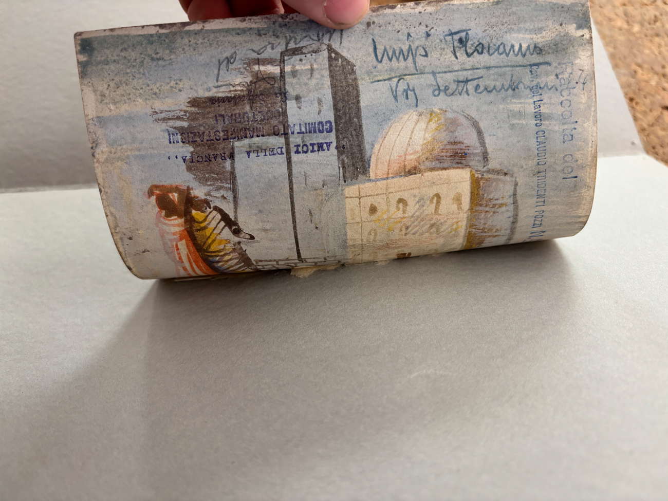 Timbro della Raccolta Claudio Tridenti Pozzi con numero di repertorio al retro