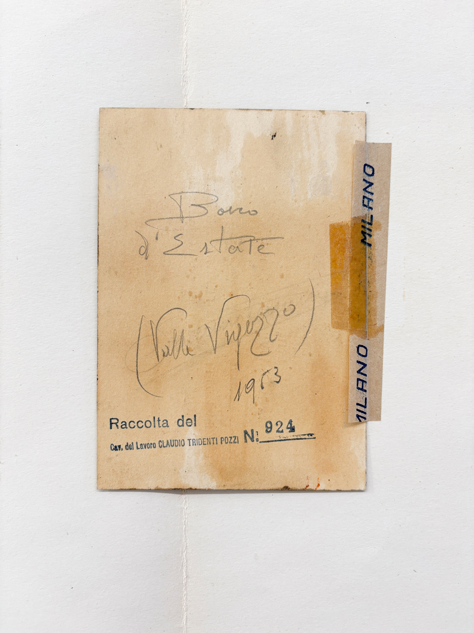 L'opera è parte della collezione di Piccolo Formato del Cavaliere del Lavoro Claudio Tridenti Pozzi, proprietario del negozio Pozzi Abbigliamento Maschile di Milano, una raccolta di opere formato cartolina iniziata nel 1935