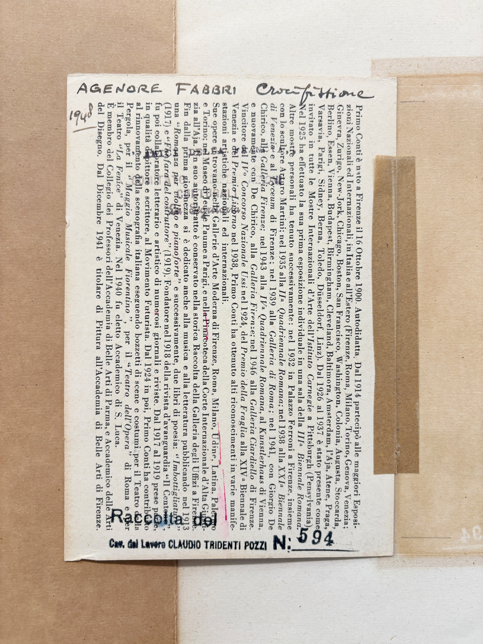 L'opera è parte della collezione di Piccolo Formato del Cavaliere del Lavoro Claudio Tridenti Pozzi, proprietario del negozio Pozzi Abbigliamento Maschile di Milano, una raccolta di opere formato cartolina iniziata nel 1935