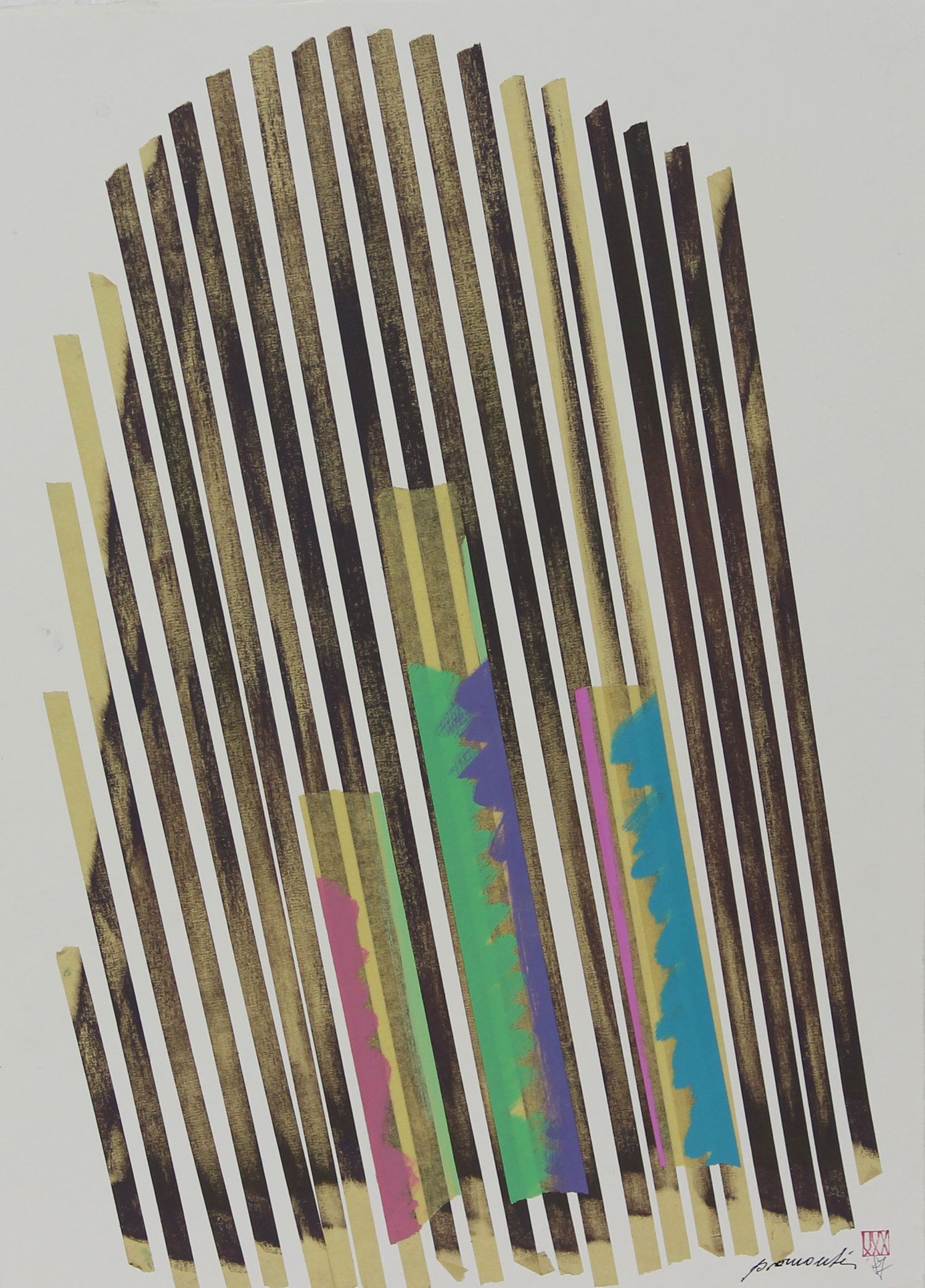 Piemonti Lorenzo Accelerazioni, 1987 acrilico e nastro carta su cartoncino, cm. 50x35 firmato e datato in basso a destra, certificato di autenticità dell'artista su fotografia senza cornice