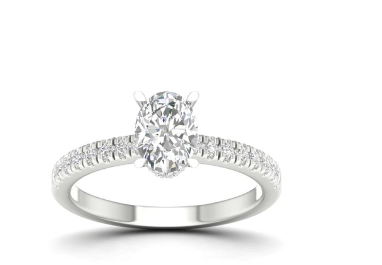Design: Diamante centrale taglio ovale con pavè di diamanti lab-grown