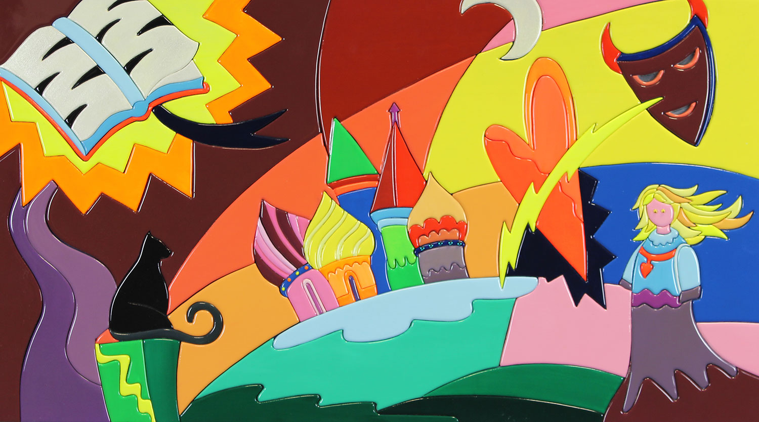 Sansavini Massimo Margherita & Co. incastri di legno laccati e lucidati su tavola, cm. 50x90 firmato e intitolato al retro, timbro a fuoco Massimo Sansavini al retro, etichetta Galleria Modenarte di Modena al retro, la tavola di supporto presenta una frattura sulla sezione destra, LOTTO PROVENIENTE DA IMPRESA E PERTANTO ASSOGGETTATO AD I.V.A. DEL 22% SUL PREZZO DI AGGIUDICAZIONE senza cornice