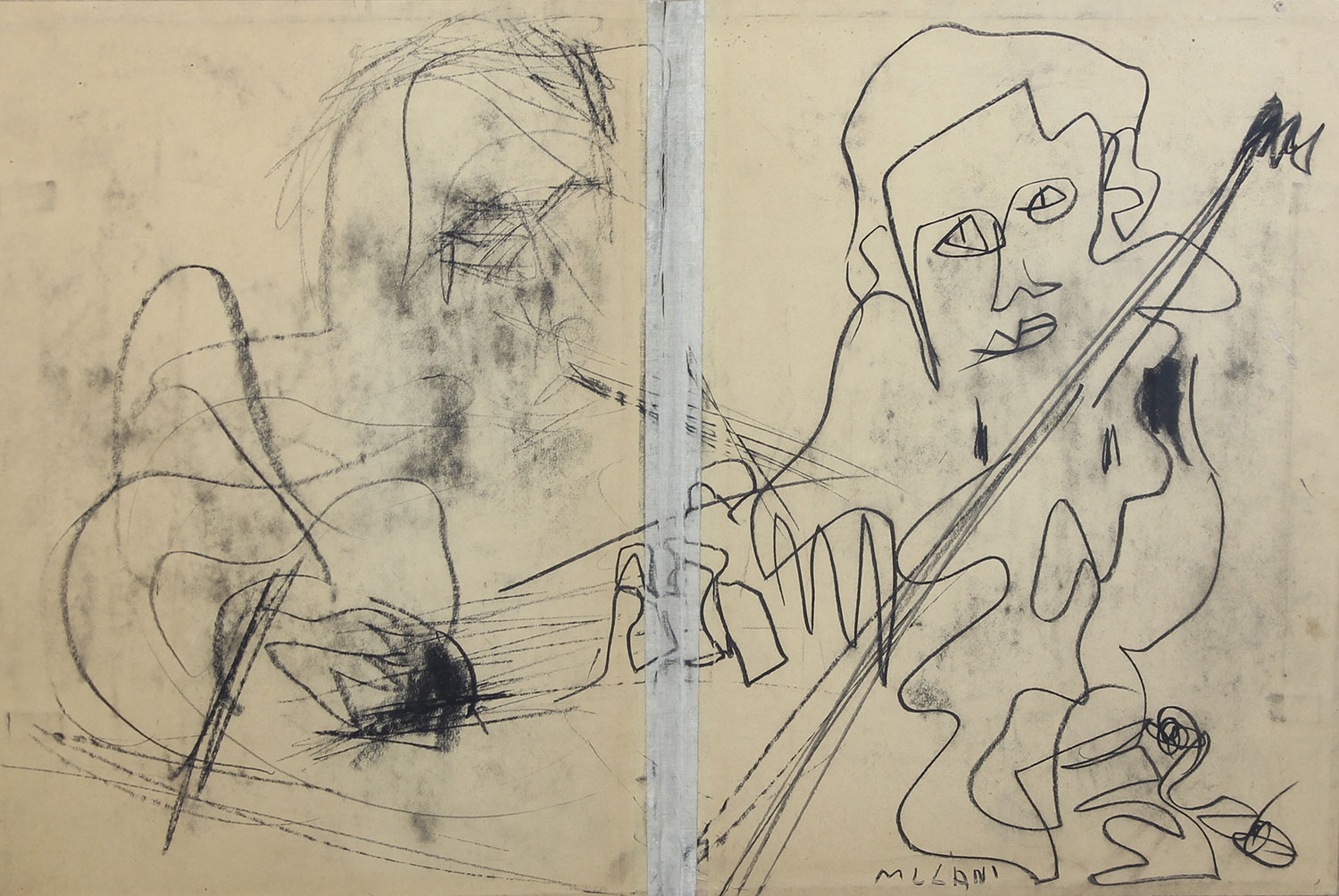 Milani Umberto Senza titolo carboncino su fodera interna (in carta) di una cartellina, cm. 51x75 firmato in basso a destra, opera esposta alla mostra personale "Omaggio a Umberto Milani", Galleria Arte Spiga di Milano, 18/30 Novembre 1982, certificazione su fotografia della Galleria Arte Spiga di Milano
